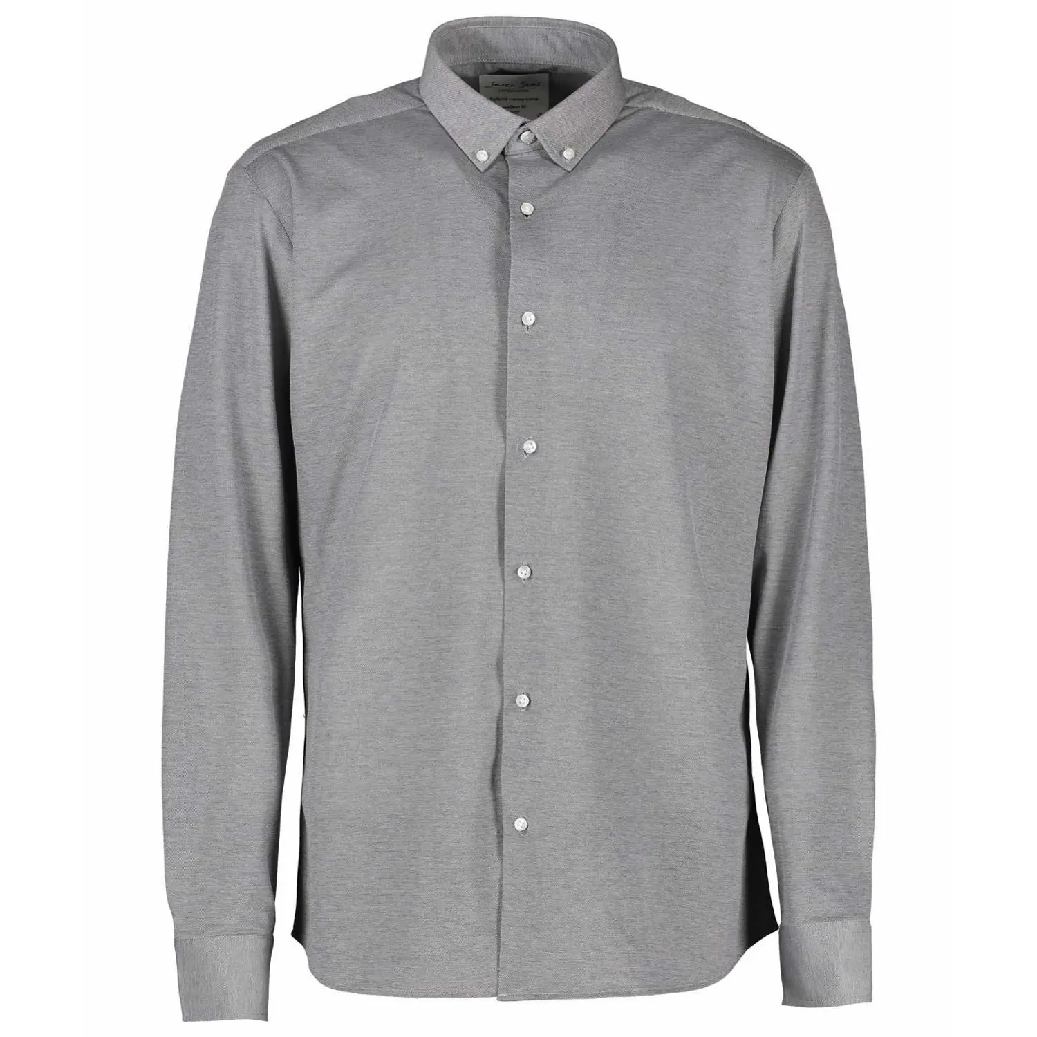 Det her er ikke bare en skjorte – det er sådan en, man faktisk gider have på hele dagen. Blød som en god t-shirt, men ser stadig pæn nok ud til, at du ikke ligner én, der lige er trillet ud af sengen. Den har button-down krave og er lavet i en lækker jersey, der strækker sig, så du kan bevæge dig uden at føle dig pakket ind som en gave. Den er nem at holde – sådan én du ikke skal stå og slås med strygejern over – og pasformen er bare rar. Kort sagt: en skjorte der både dur til arbejde, fest og en tur ned og hente rundstykker.
